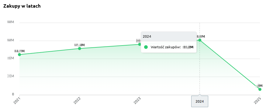“Purchases over the years” – the chart presents the total value of purchases on an annual basis, allowing the analysis of the company’s spending dynamics over recent years.