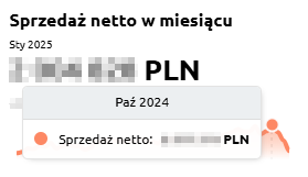 The Net sales in the month indicator presents the value of sales achieved in a given month, including a comparison to the result from the previous period. This makes it easy to quickly assess whether the sales dynamics are increasing or decreasing.