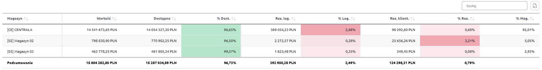 Thanks to this, it is easy to assess the structure of inventory and the share of reserved items in relation to available stock.
